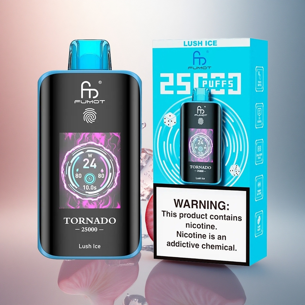 Découvrez le Fumot Tornado 25000 Puffs, une révolution dans le monde de la vape avec son écran HD, sa batterie rechargeable 700mAh et son e-liquide pré-rempli de 20ml. Profitez d’une expérience personnalisée avec des dosages de nicotine ajustables (0%/2%/3%/5%) et une autonomie exceptionnelle allant jusqu’à 25000 bouffées.