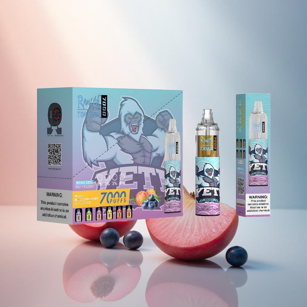RandM Fumot Tornado 7000 Puffs Bonbon Pêche Myrtille 14ML Mesh Lumière RGB