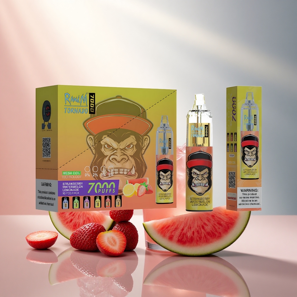RandM Fumot Tornado 7000 Puffs Fraise Pastèque Limonade avec Batterie 850 MAH et Lumière RGB
