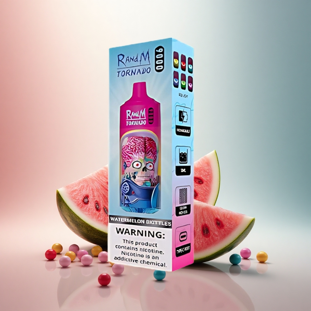 RandM Fumot Tornado 9000 Puffs Skittles Pastèque Rechargeable 850 mAh avec Affichage RGB