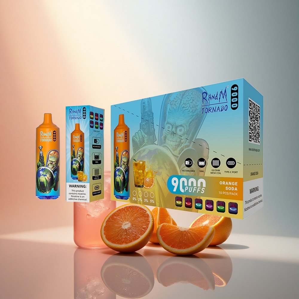 RandM Fumot Tornado 9000 Puffs Soda Orange Électrique 850 mAh 18 mL Mesh