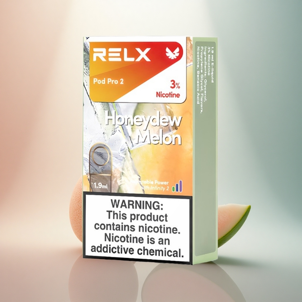 Relx Pod Pro 2 Vape Device Melon Miel 30mg/ml 1.9ml Mode Éco 5.5W Doux 6.5W Boost 8W 2-3 pods/paquet