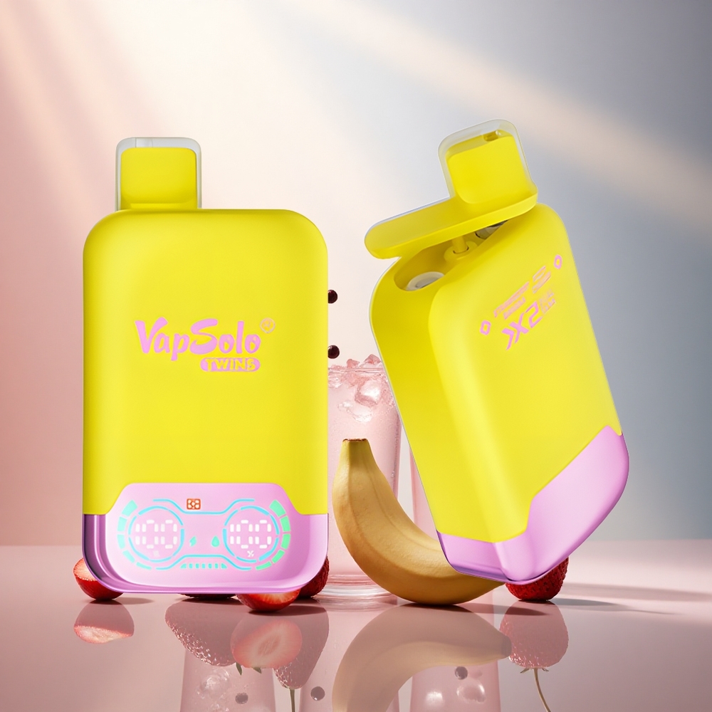 Vapsolo Twins 20000 Puffs Fraise Banane & Cerise Pétillante avec Double Réservoir de 40 ml et Port Type-C